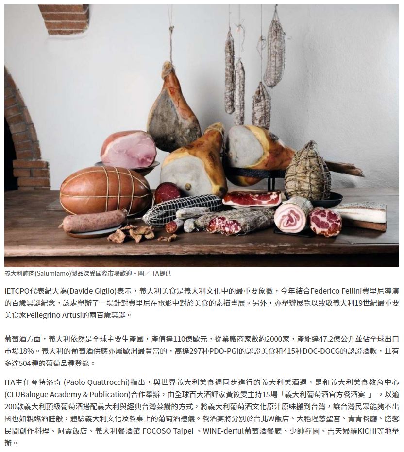 義大利美食週11/23全球同步登場! 15場餐酒宴在台體驗道地美酒佳肴