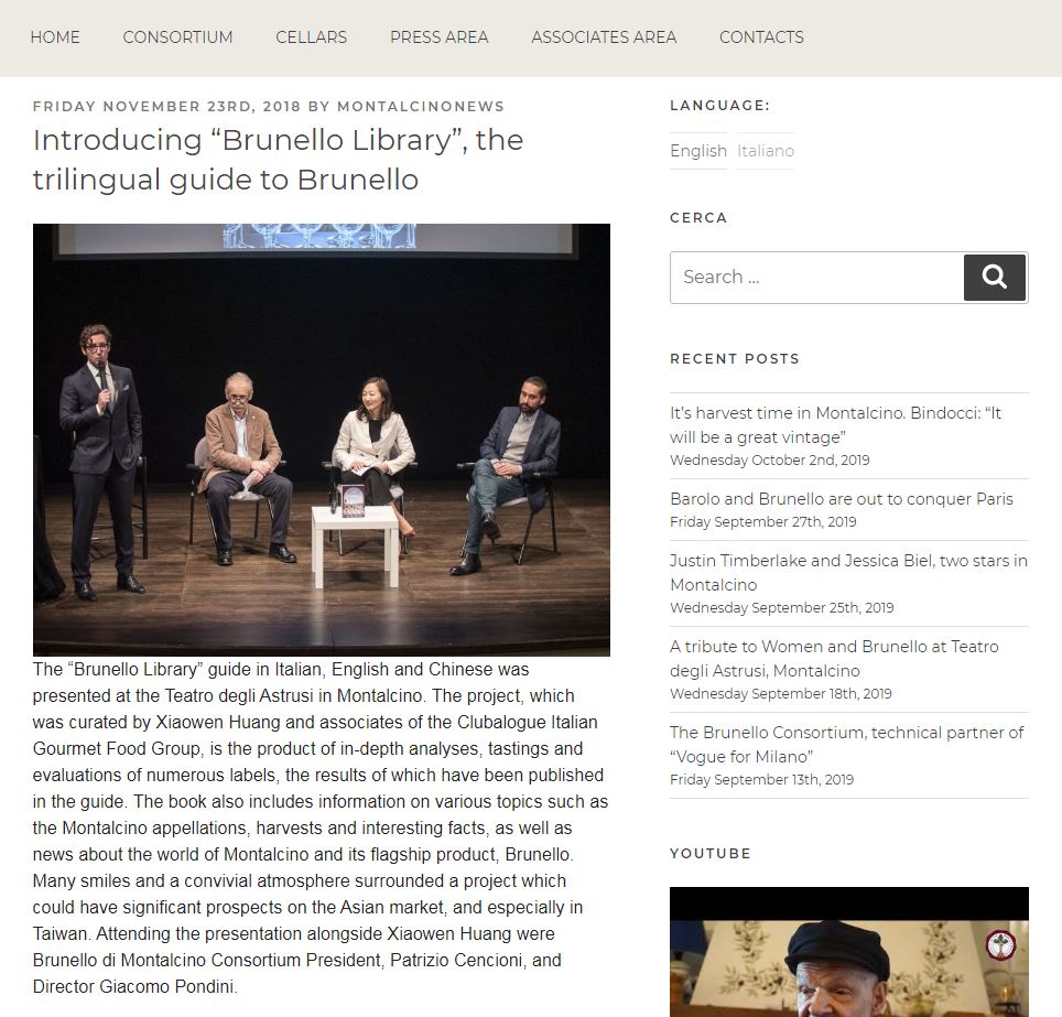 《托斯卡尼義大利酒后》於義大利蒙達奇諾歌劇院發表上市