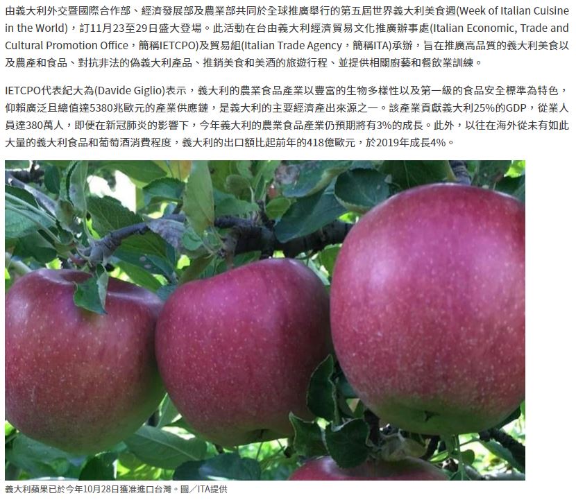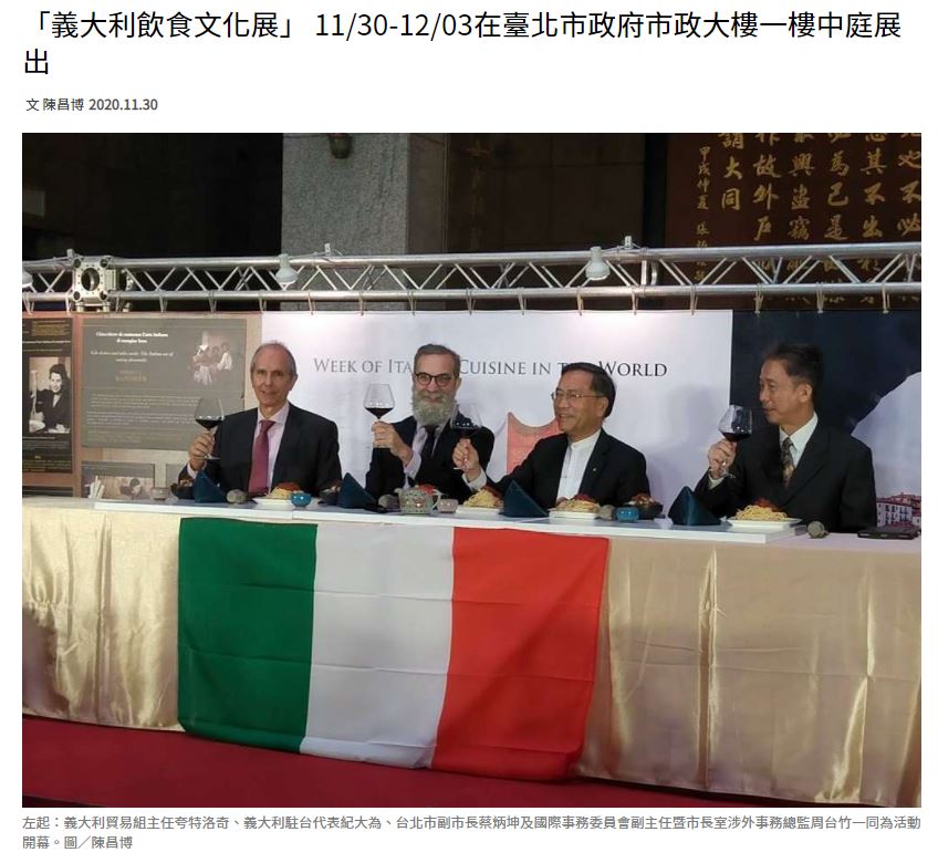 「義大利飲食文化展」11/30-12/03 在臺北市政府市政大樓一樓中庭展出