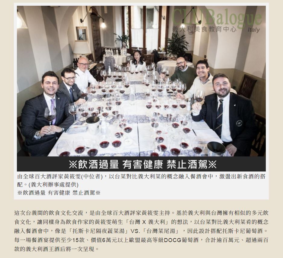 第五屆世界義大利美食文化推廣週將在2020年11月23日至29日 舉辦十五場義大利酒王酒后官方餐酒宴
